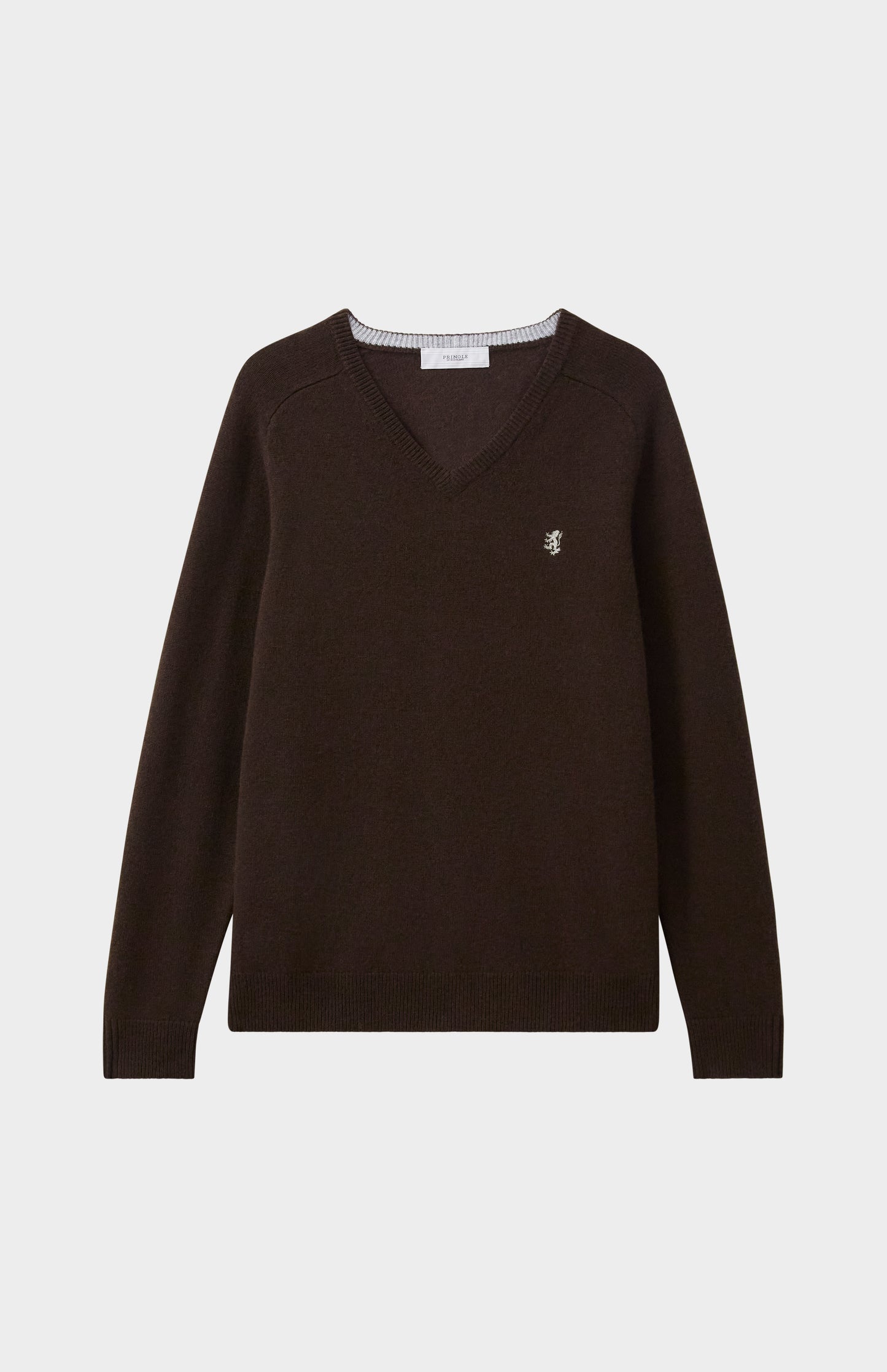 Lambswool is a soft, breathable wool, making it ideal for all year round. This simple dark umber men's V-neck jumper features contrast tipping and our signature embroidered lion on the chest.