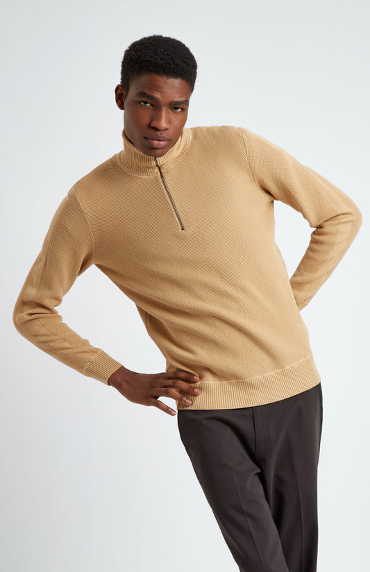 Men's Half Zip Cotton Jumper In Sand
