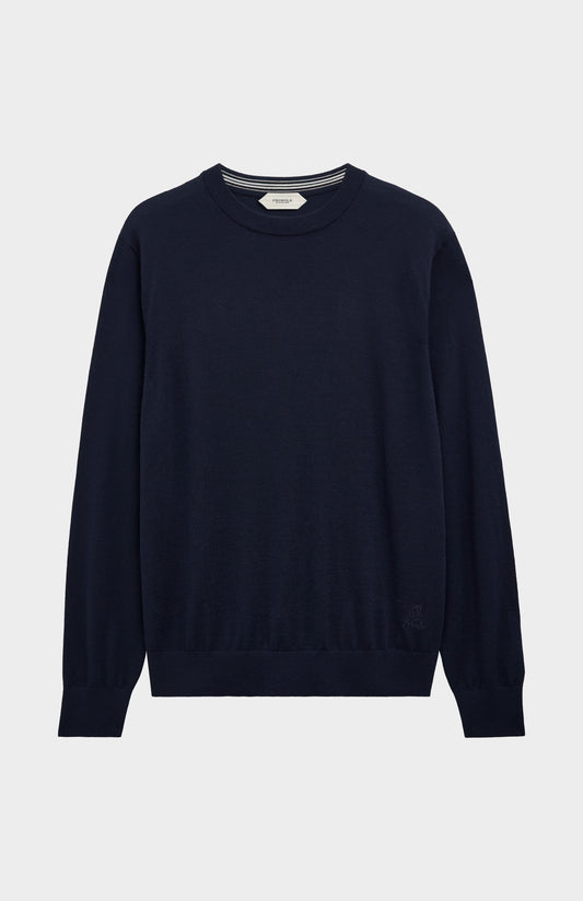 Men's Crew Neck Extra Fine Merino Wool Jumper In Navy Blue