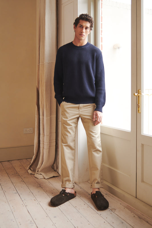 A men's round neck jumper is a wardrobe staple. We offer the most luxurious round neck sweaters in cashmere, merino wool, lambswool and soft wool blends.