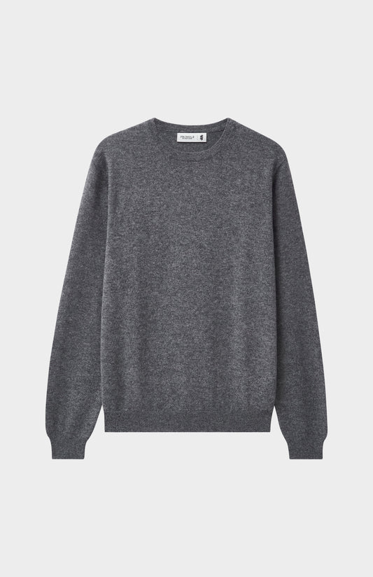 Men's Classic Round Neck Cashmere Jumper In Grey Melange