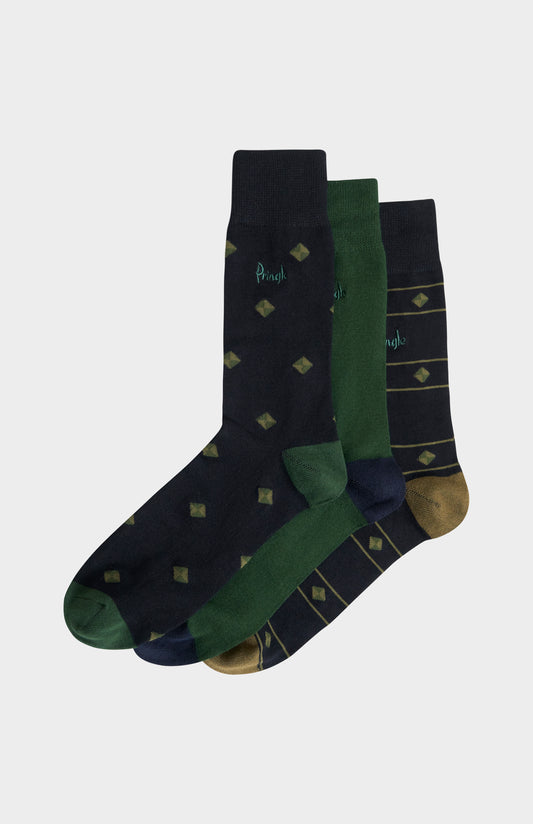 Men’s Argyle Cotton Jacquard Socks in Black, Olive & Blue