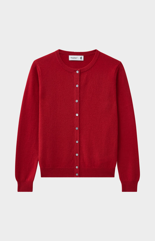 Womens Classic Round Neck Cashmere Cardigan In Scarlet