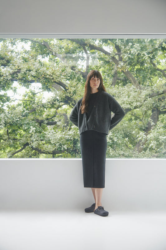 Women's Classic Crew Neck Cashmere Cardigan In Charcoal Melange
