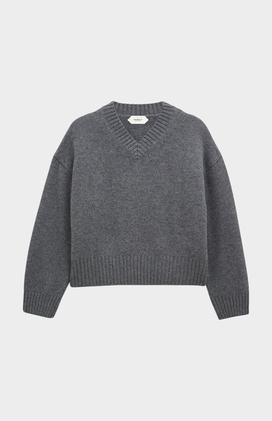 Women's V-neck Chunky Cashmere Jumper In Grey Melange
