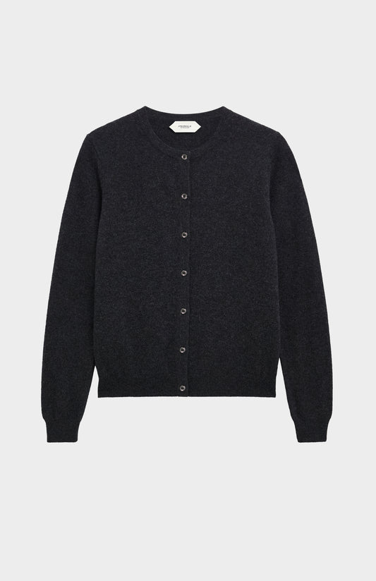 Women's Classic Crew Neck Cashmere Cardigan In Charcoal Melange