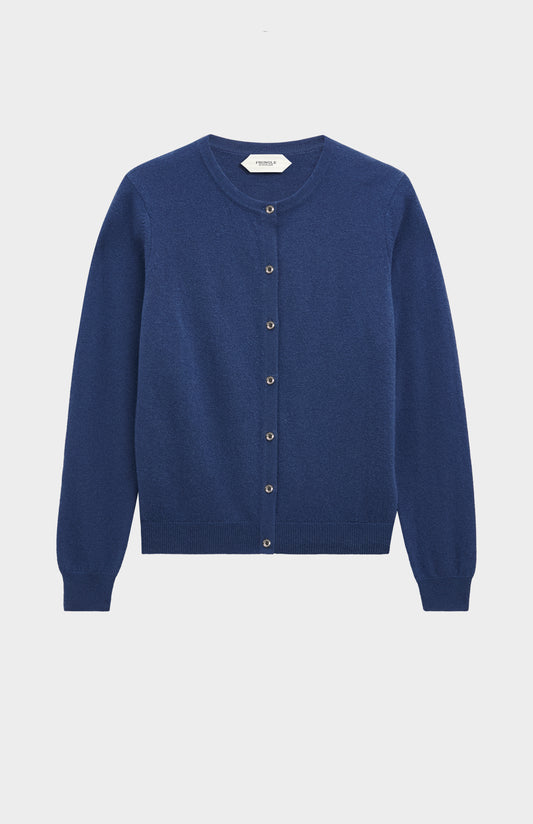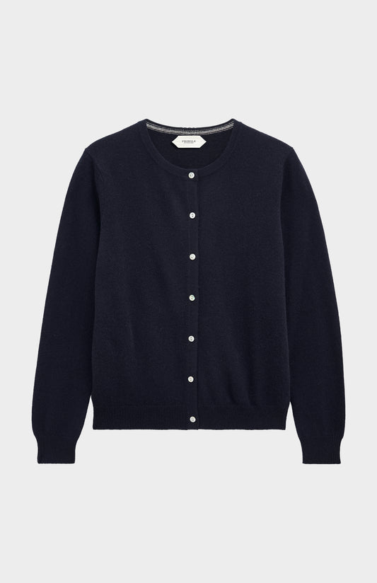 Women's Classic Crew Neck Cashmere Cardigan In Navy Blue
