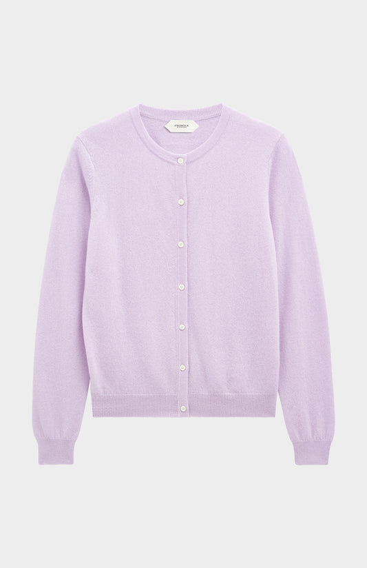 Women's Classic Crew Neck Cashmere Cardigan In Lilac