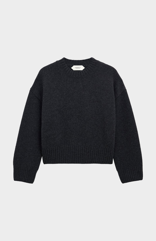 Made in ScotlandWomen's Cropped Round Neck Chunky Cashmere Jumper In Charcoal