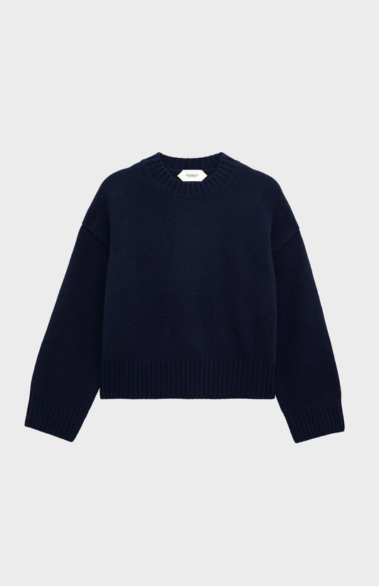 Women's Crew Neck Chunky Cashmere Jumper In Navy Blue