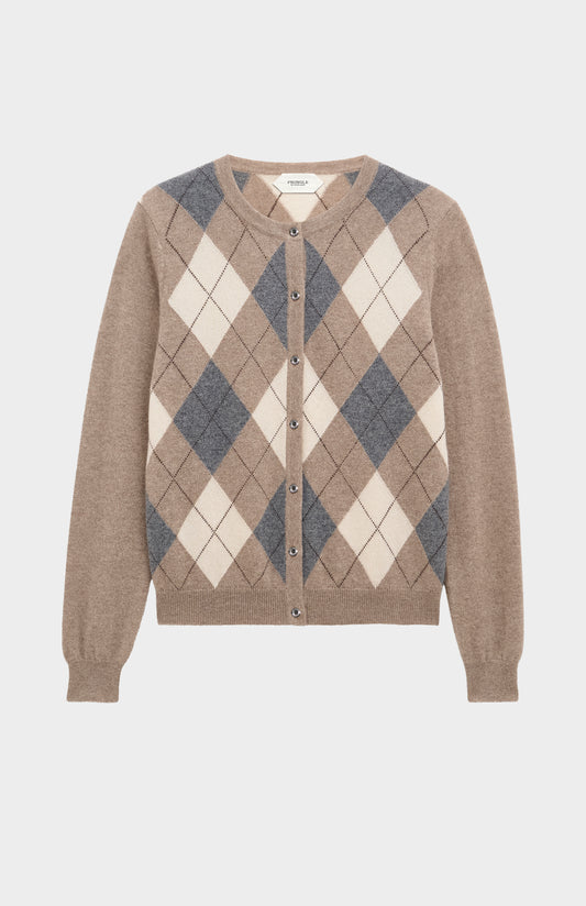 Women's Crew Neck Cashmere Argyle Cardigan In Brown / Navy / Grey