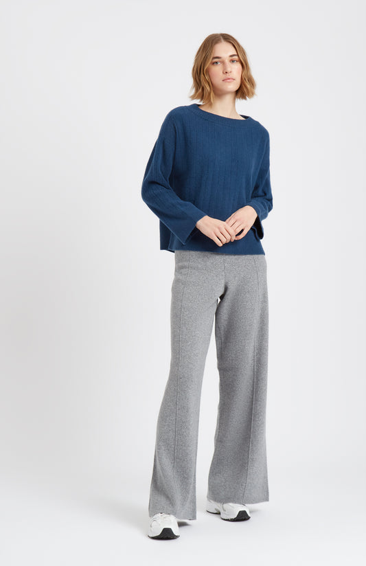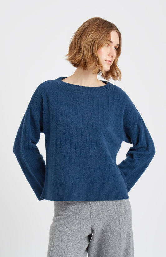 Wool Cashmere Blend Wide Neck Rib Jumper In Indigo