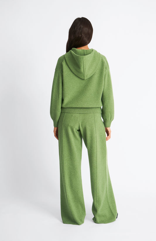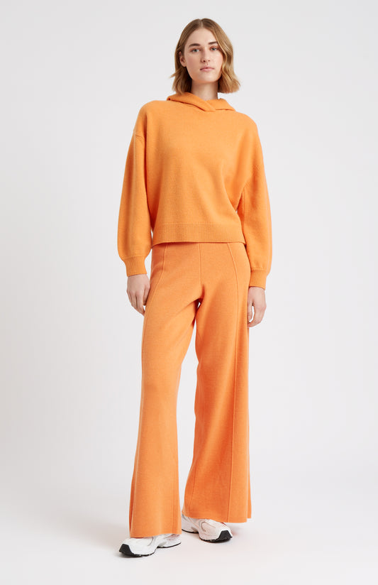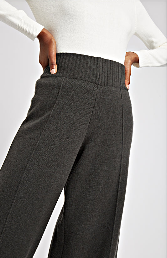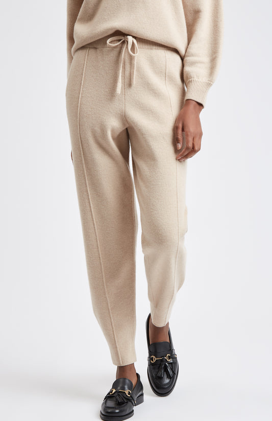 Knitted Wide Leg Cashmere Blend Trousers In Stone Melange