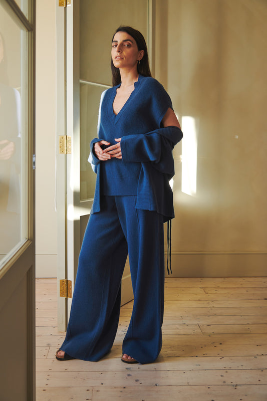 Women's Cashmere Blend V Neck Sleeveless Jumper In Night Sky