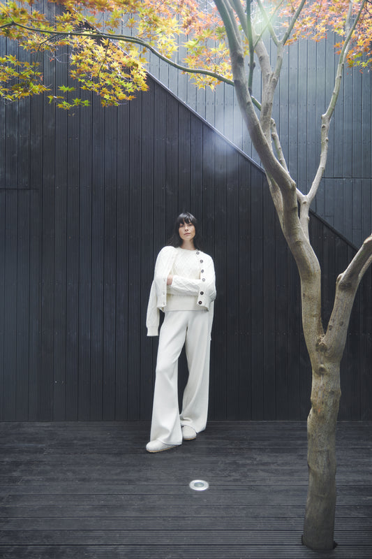 Knitted Wide Leg Cashmere Blend Trousers In Cream