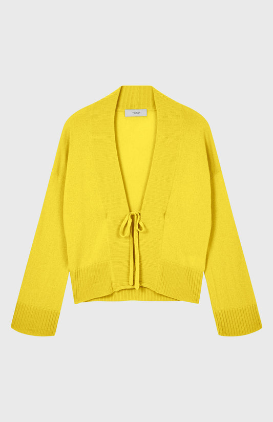 Women's Lightweight Cashmere Open Cardigan With Tie In Bright Yellow