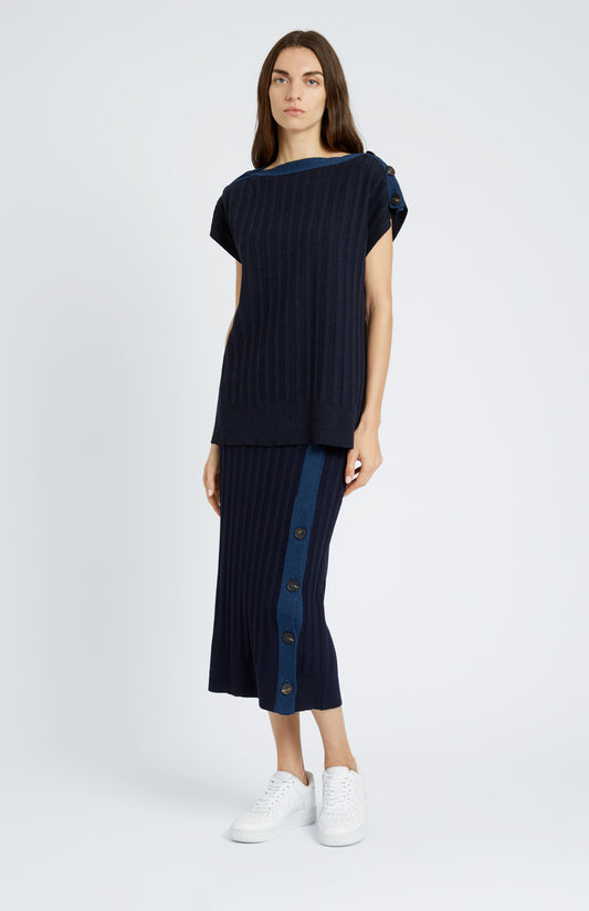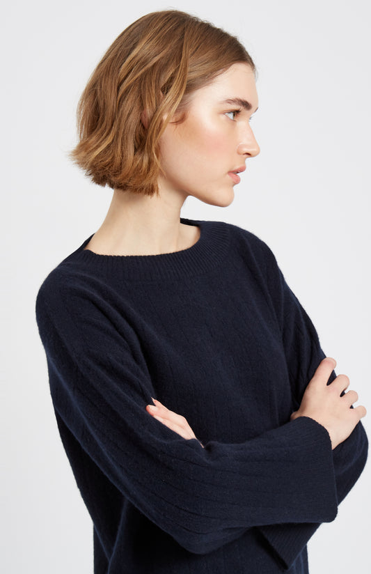 Wool Cashmere Blend Wide Neck Rib Jumper In Night Sky