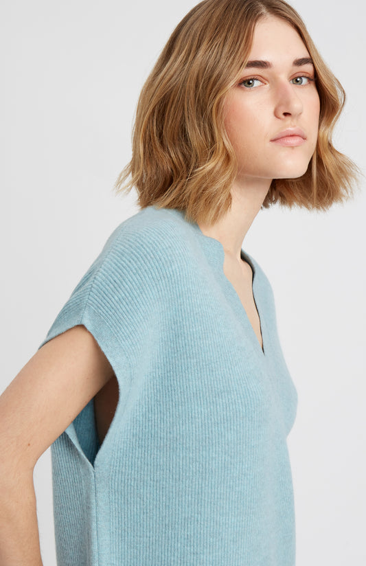 Women's Cashmere Blend V Neck Sleeveless Jumper In Aqua Melange