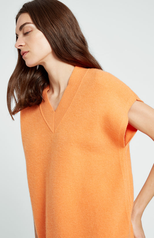 Women's Cashmere Blend V Neck Sleeveless Jumper In Burnt Orange