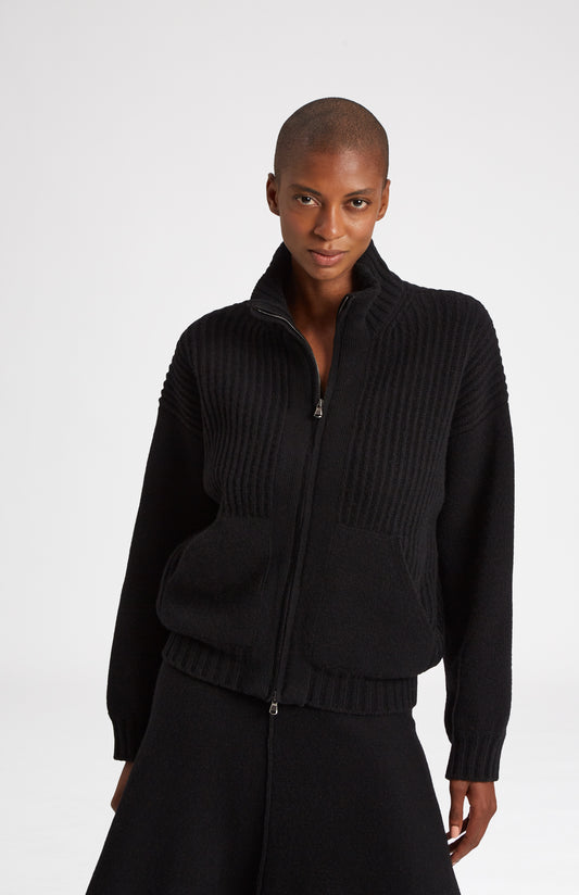 Cashmere Blend High Neck Zip Thru Jacket In Cream
