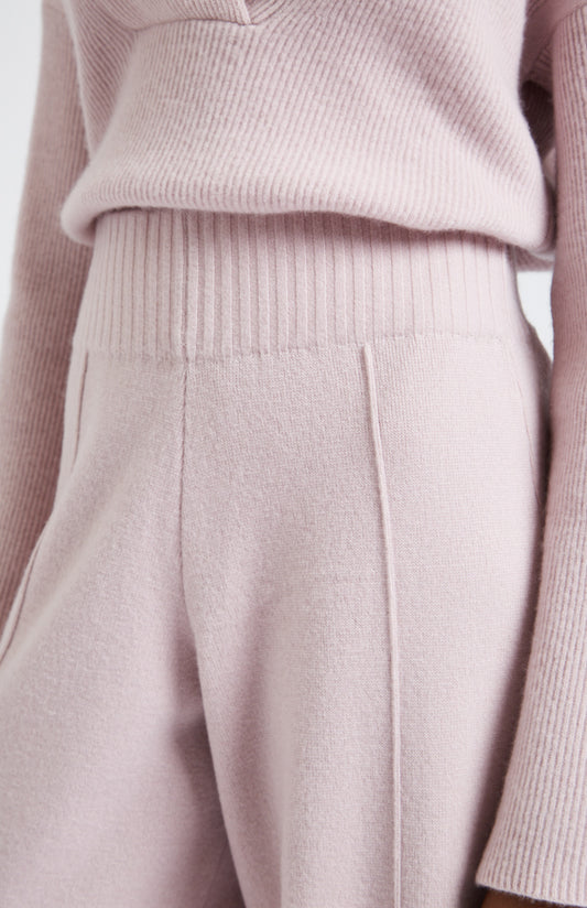 Knitted Wide Leg Cashmere Blend Trousers In Powder Pink