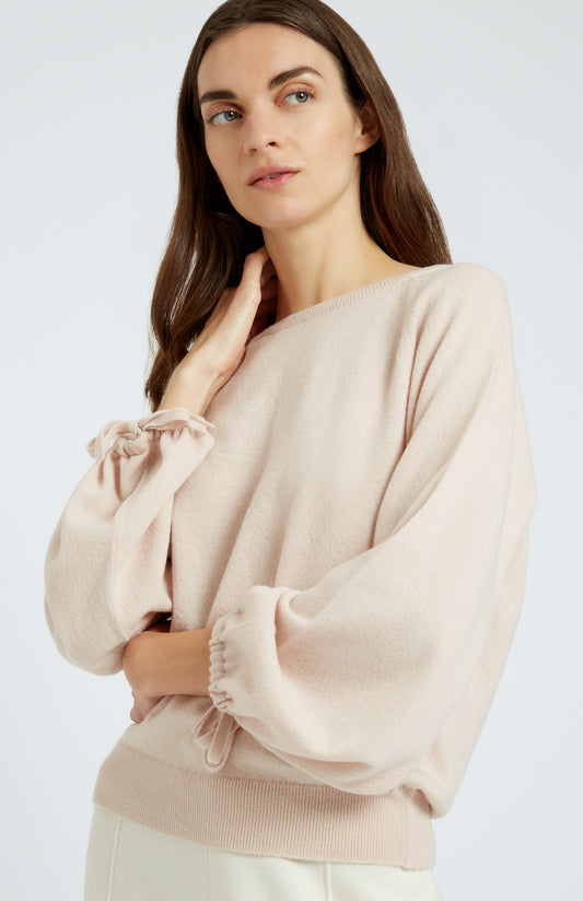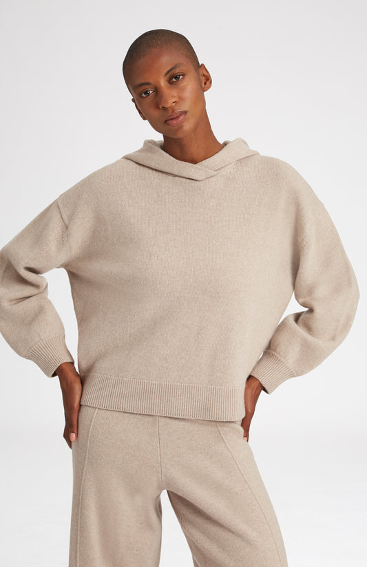 Wool Cashmere Blend Wide Neck Rib Jumper In Sand