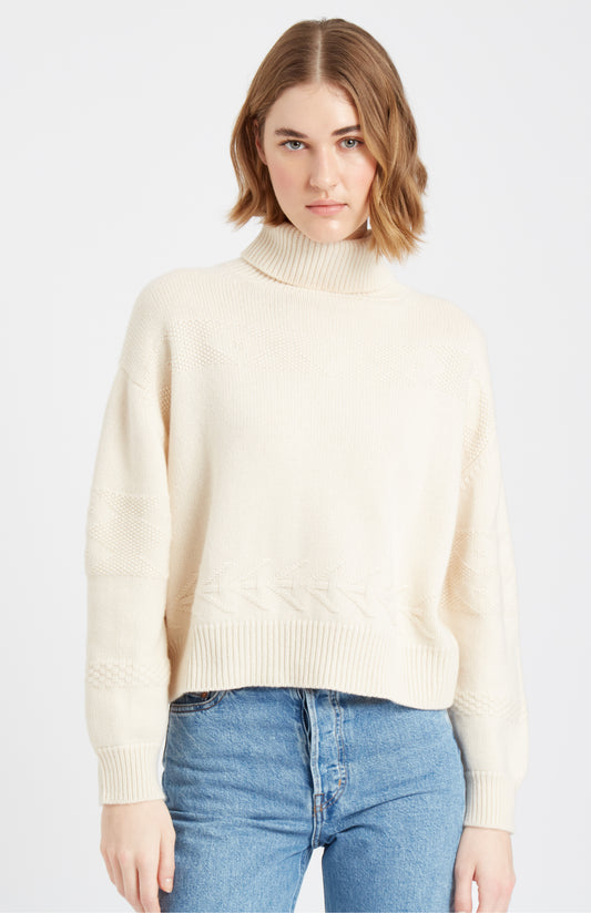 Roll Neck Guernsey Cashmere Jumper In Off White