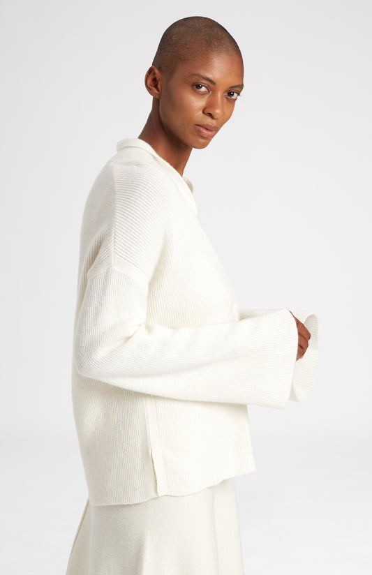 Women's Polo-style Cashmere Jumper In Vanilla Cream