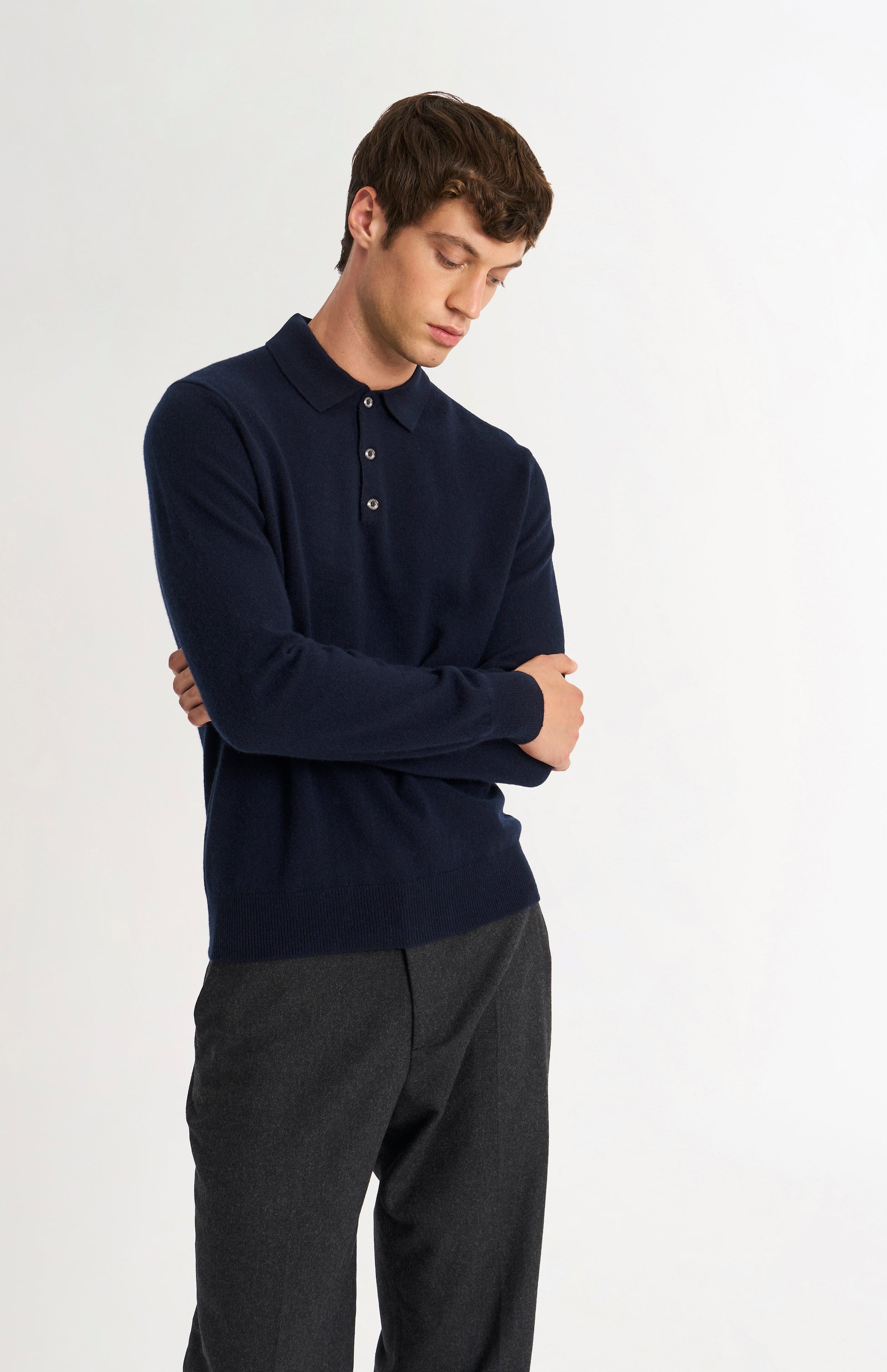 Men's Classic Polo Shirt Cashmere Jumper In Navy Blue