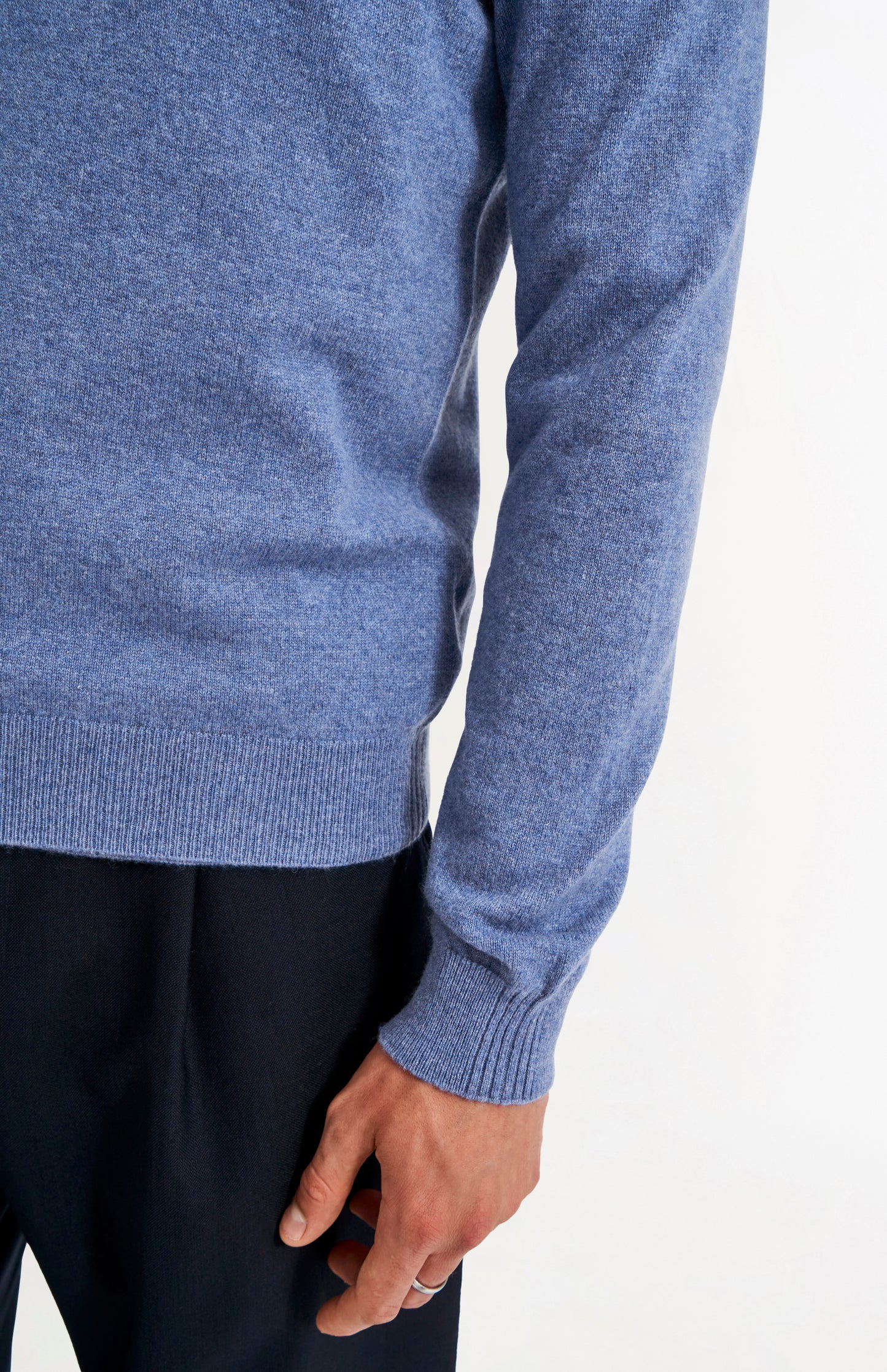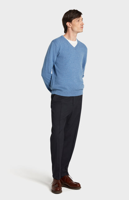 Men's Classic V Neck Cashmere Jumper In Blue Melange