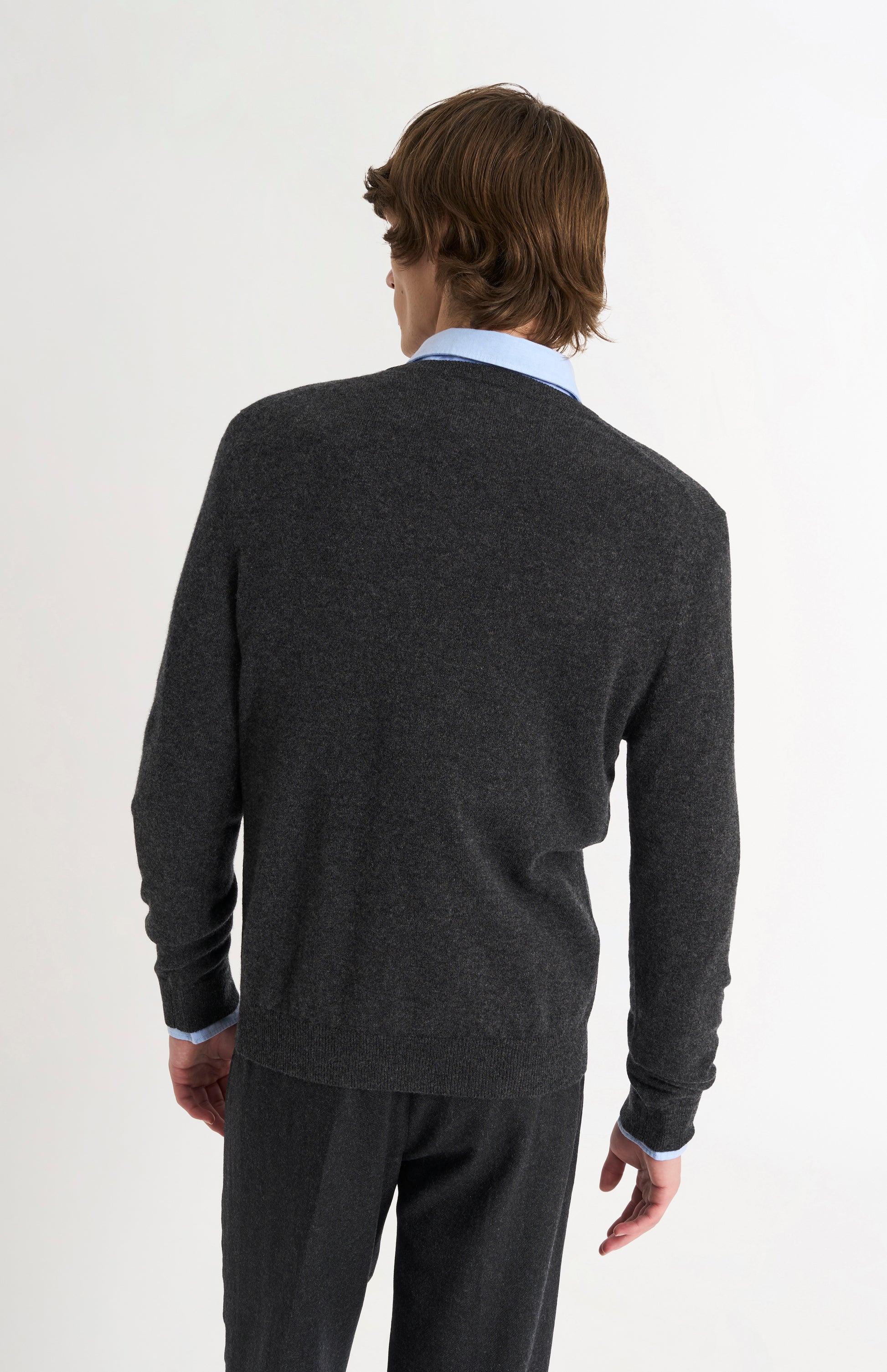 Men's Classic V-neck Cashmere Jumper In Charcoal Melange