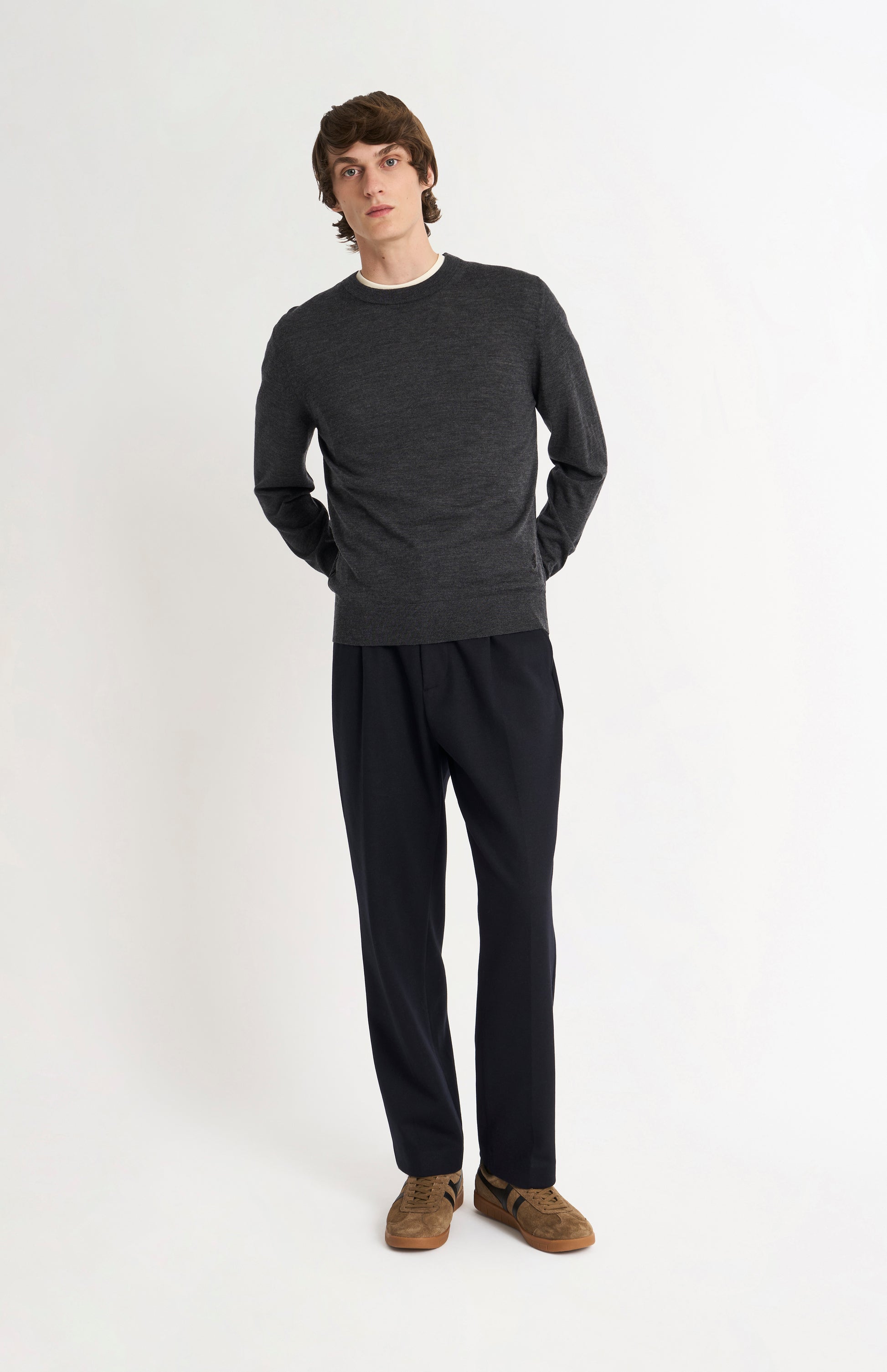 Men's Crew Neck Extra Fine Merino Wool Jumper In Charcoal Melange