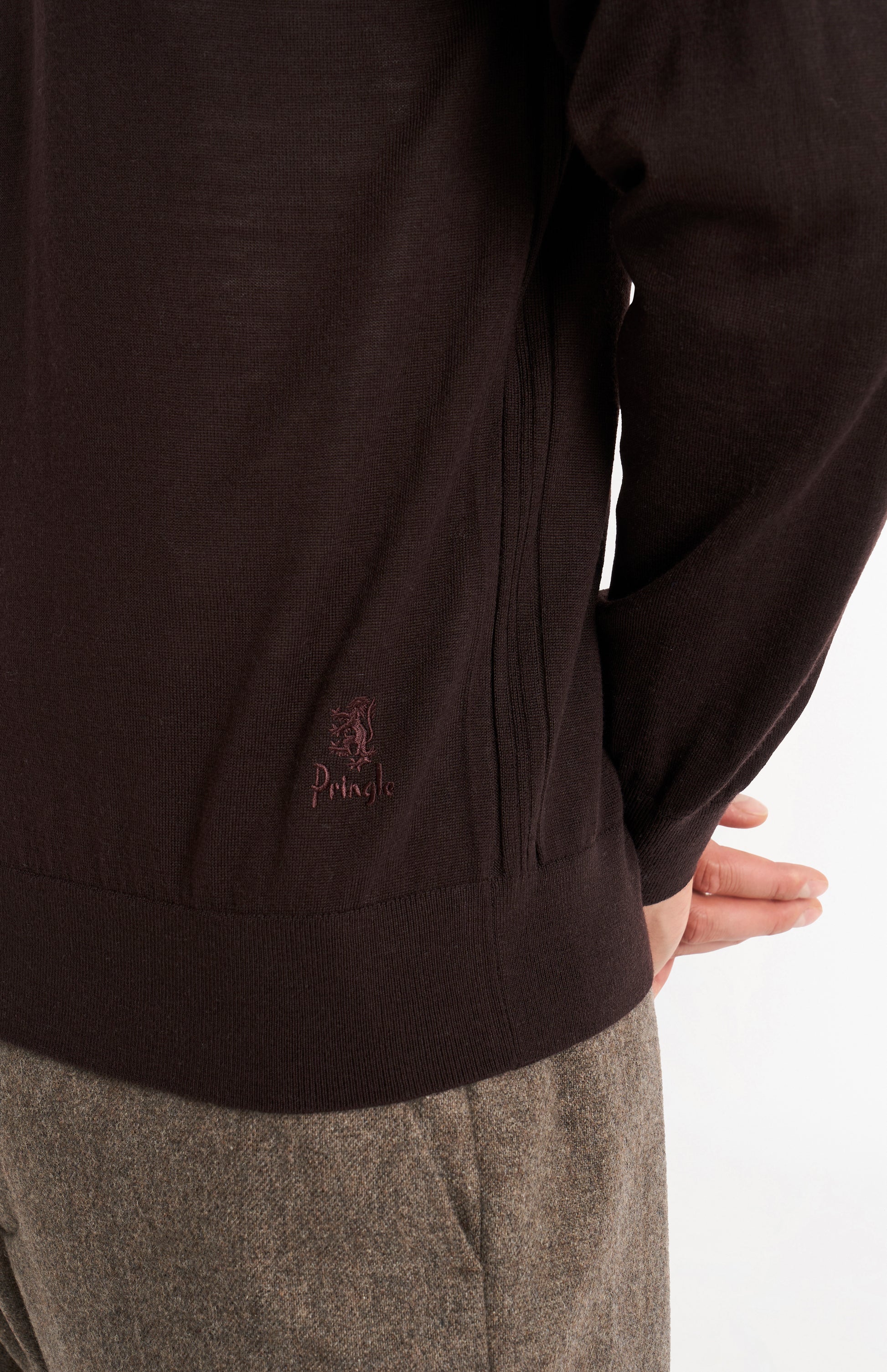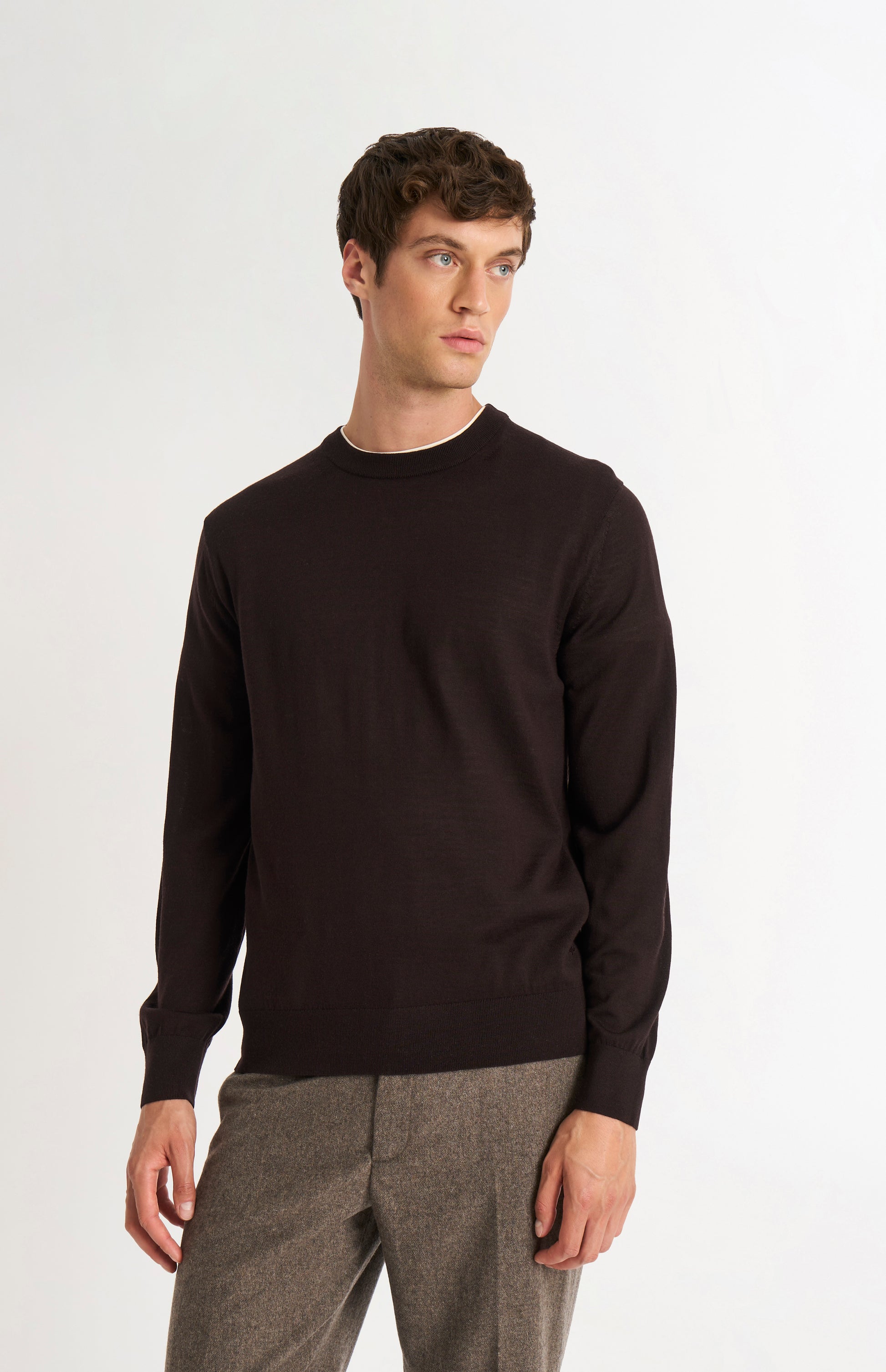 Men's Crew Neck Extra Fine Merino Wool Jumper In Dark Brown