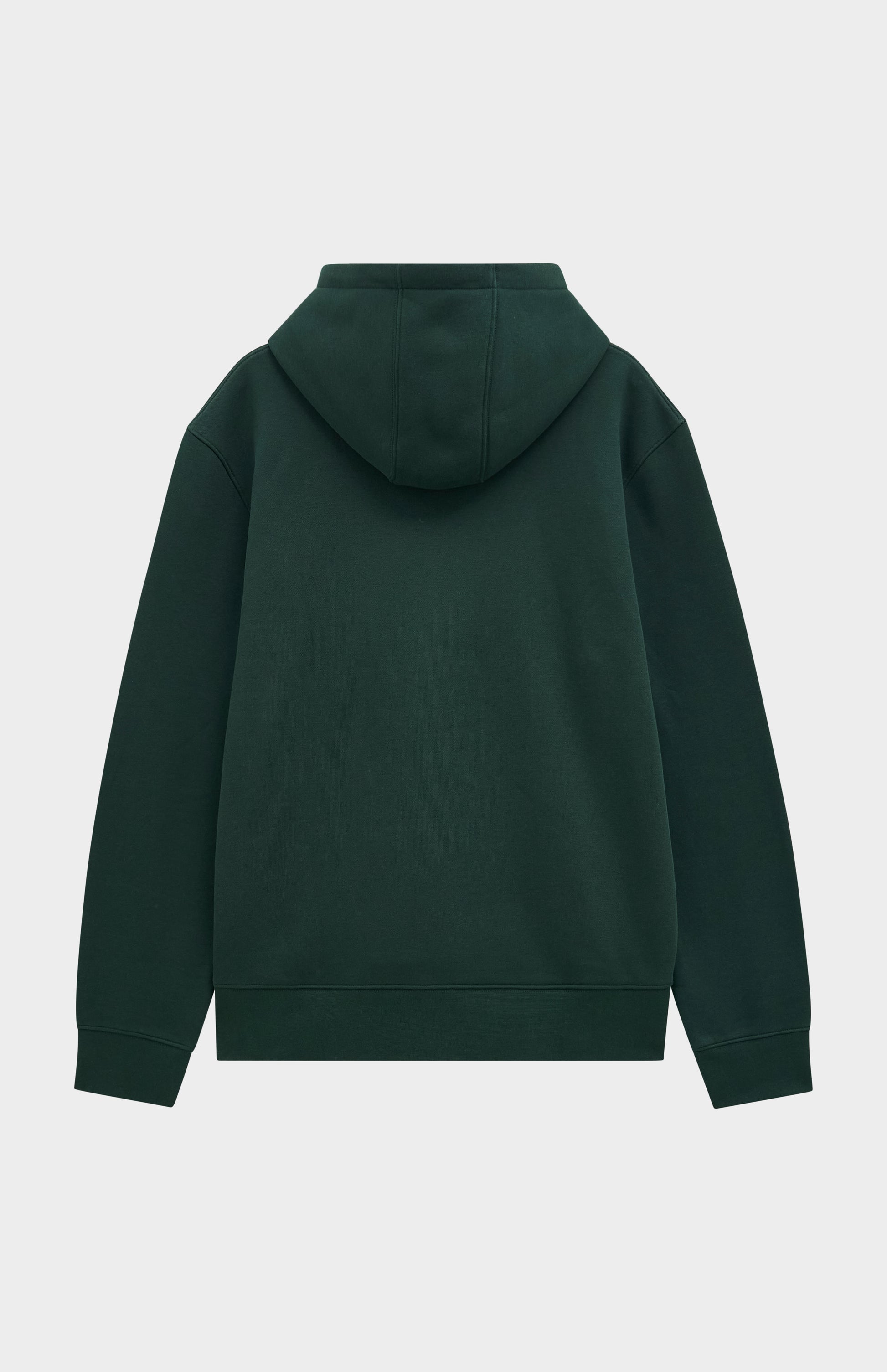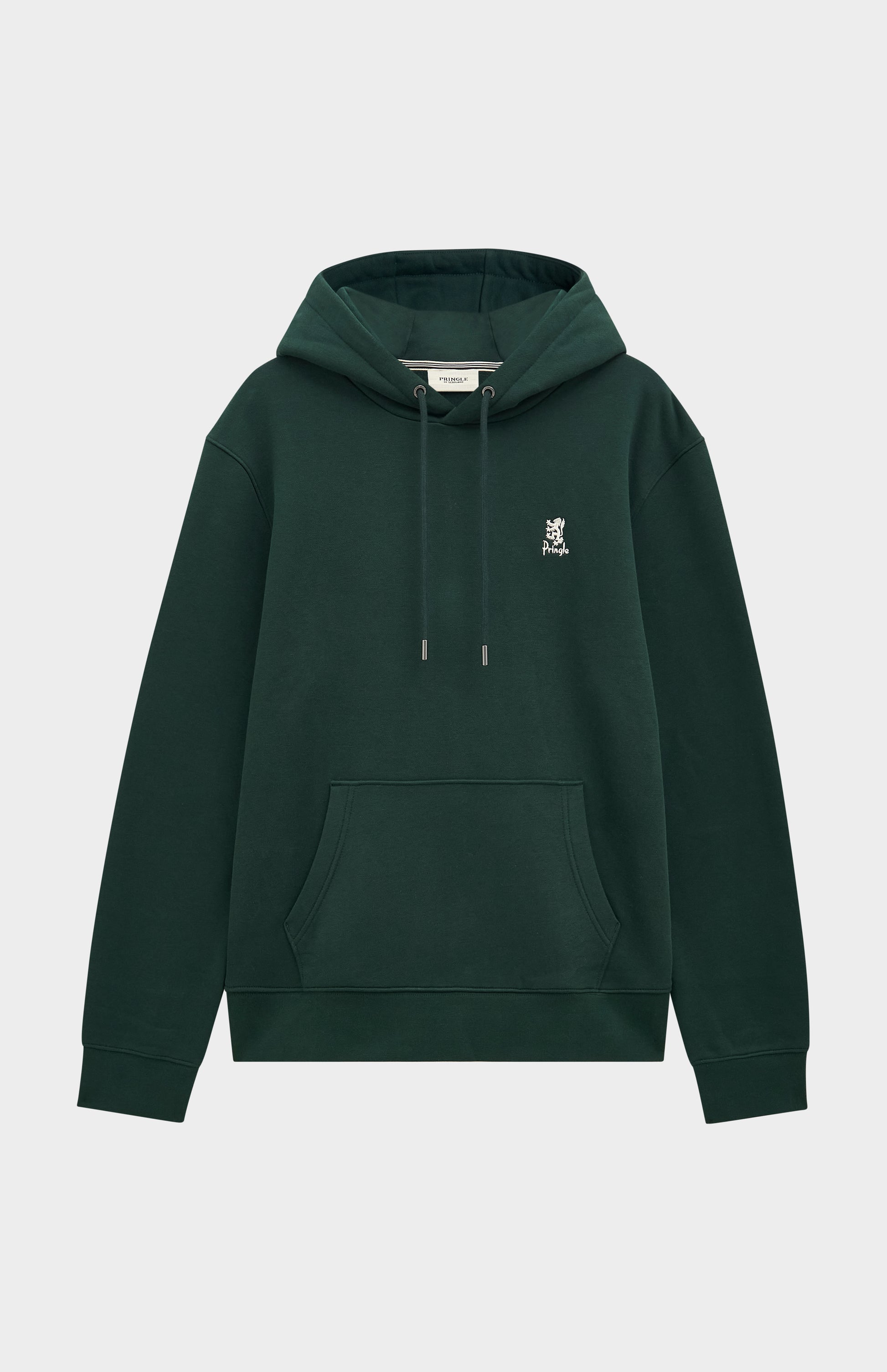 This timeless hoodie in pine green is the epitome of elevated casualwear - clean, contemporary, and built to last. Designed for everyday comfort, it offers enduring durability without compromising its ultra-soft hand feel. The brushed interior delivers an exceptionally smooth touch against the skin, making it your go-to for refined, effortless style. Elevated details complete the design - from the signature house stripe back neck tape to the lion logo on the chest that adds a modern, tactile finish. Brushed metal trims featuring the branded logo on the eyelets and drawcord ends ads to its premium aesthetic. A classic kangaroo pocket serves both function and relaxed appeal. This hoodie is a quiet yet confident statement of craftsmanship and quality.