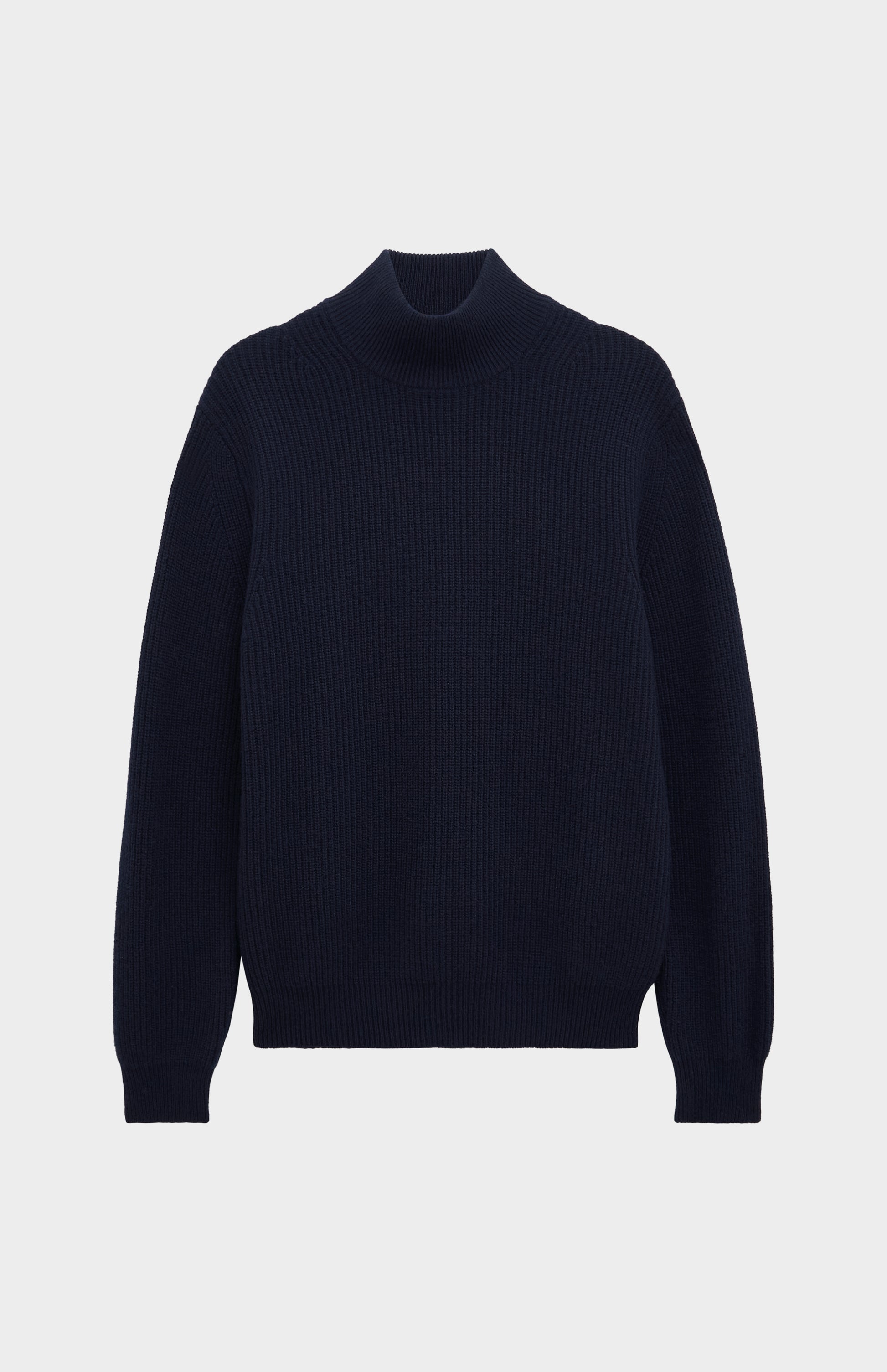 Men's Mock Neck Rib Cashmere Jumper In Navy Blue