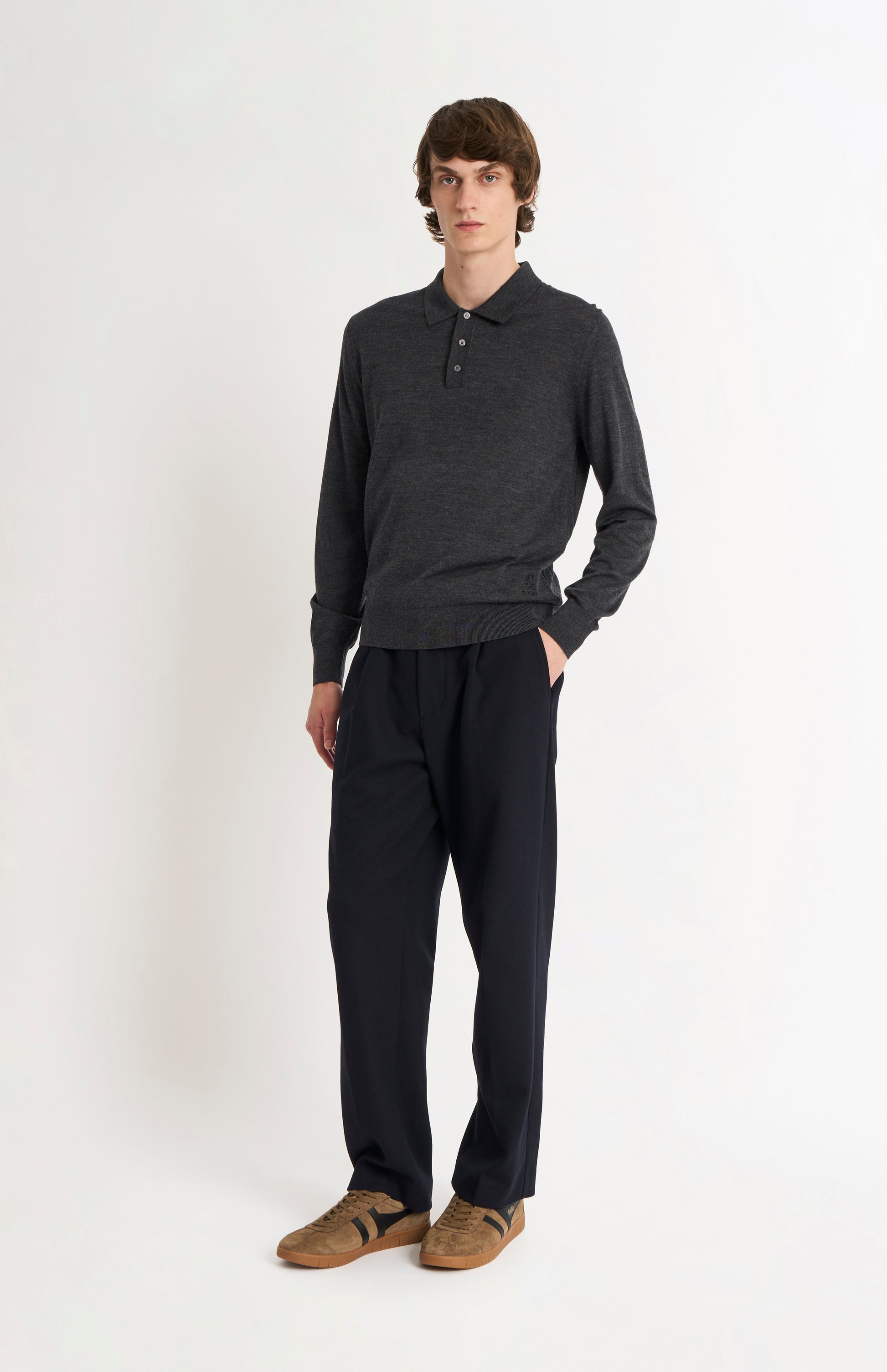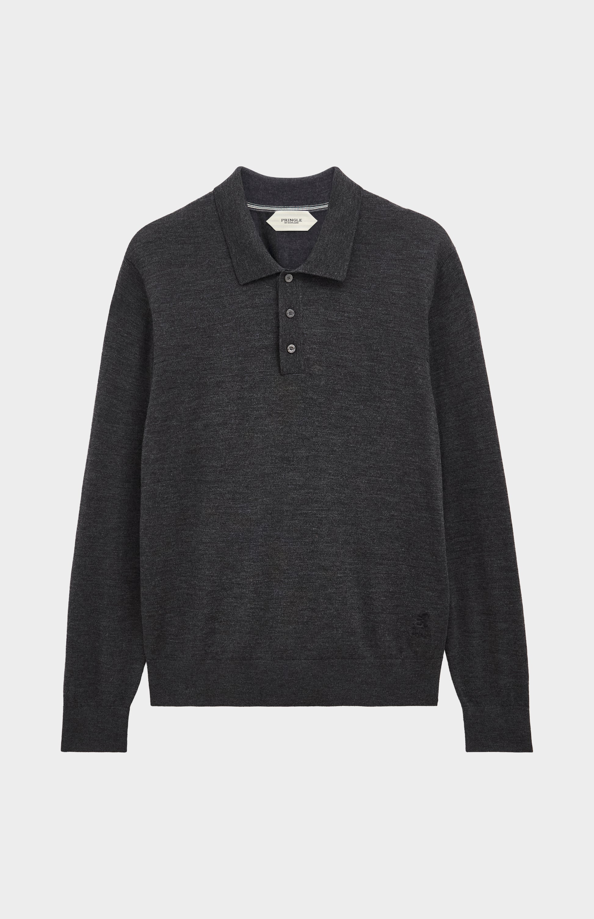 Men's Polo Shirt Extra Fine Merino Wool Jumper In Charcoal Melange