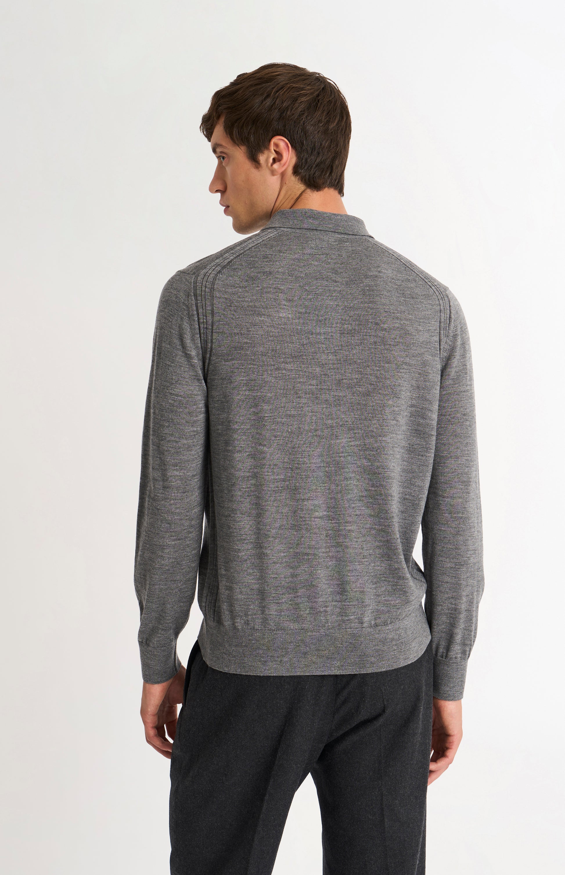 Men's Polo Shirt Extra Fine Merino Wool Jumper In Grey Melange