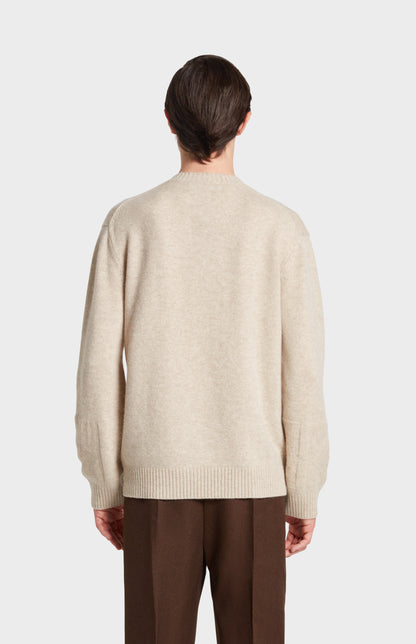 This mid weight crew neck jumper in Oatmeal features a textured stitch detail on the sleeve that is inspired by the geometric patterns of Scottish Sanquhar knitting. We use the finest cashmere for our knitwear to give it the distinctive Pringle touch and quality.