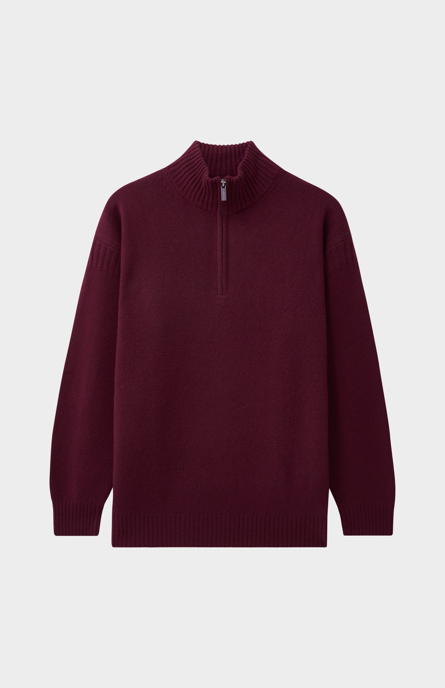 Men's Zip Neck Cashmere Jumper In Burgundy