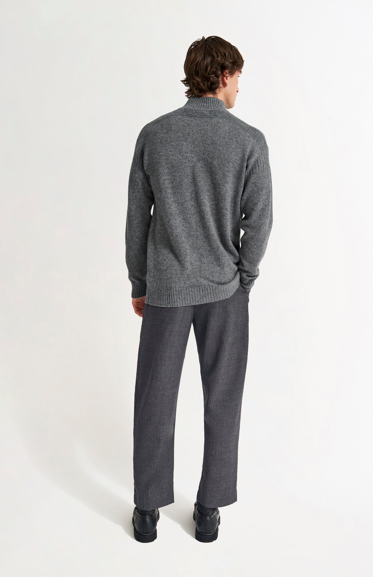 Men's Zip Neck Cashmere Jumper In Grey Melange