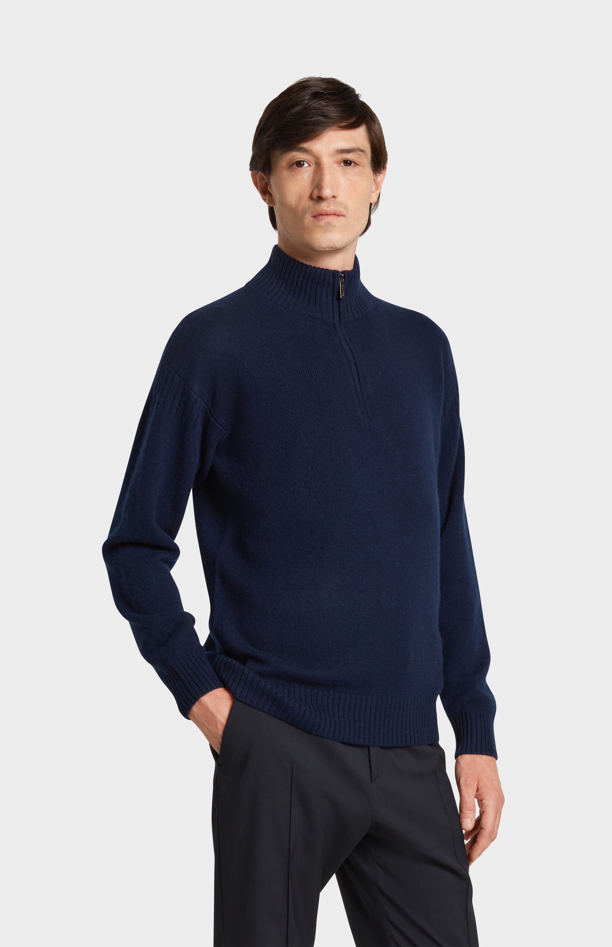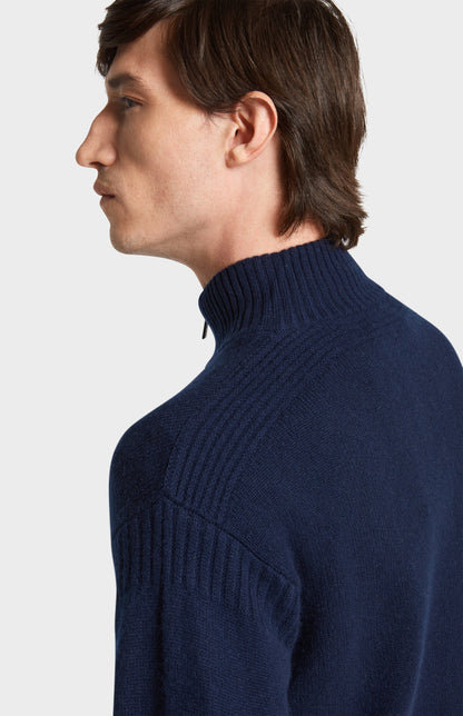 Men's Zip Neck Cashmere Jumper In Navy Melange