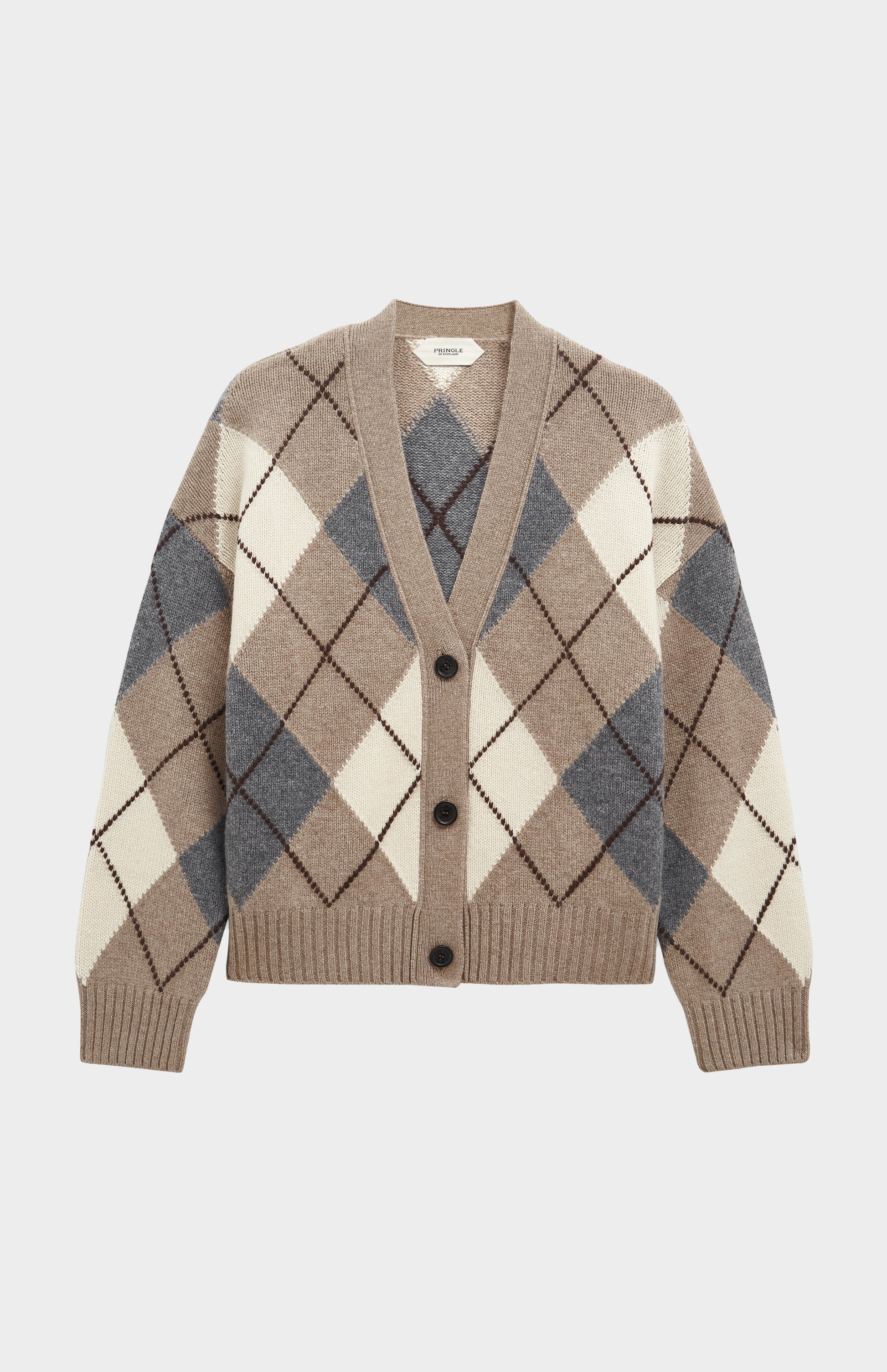 This chunky mushroom cardigan is crafted from the finest cashmere, sourced from mountain goats in the highlands of China and Tibet. With a heavier weight, exceptional softness, and natural breathability, it offers a relaxed fit perfect for colder days. The iconic grey Argyle pattern, featured throughout the design, makes this cardigan a statement piece, modern, versatile, and fashion-forward with a sophisticated colour palette. With over 200 years of knitwear craftsmanship, this cardigan seamlessly combines style, comfort, and enduring quality, a true Pringle essential for the modern wardrobe.