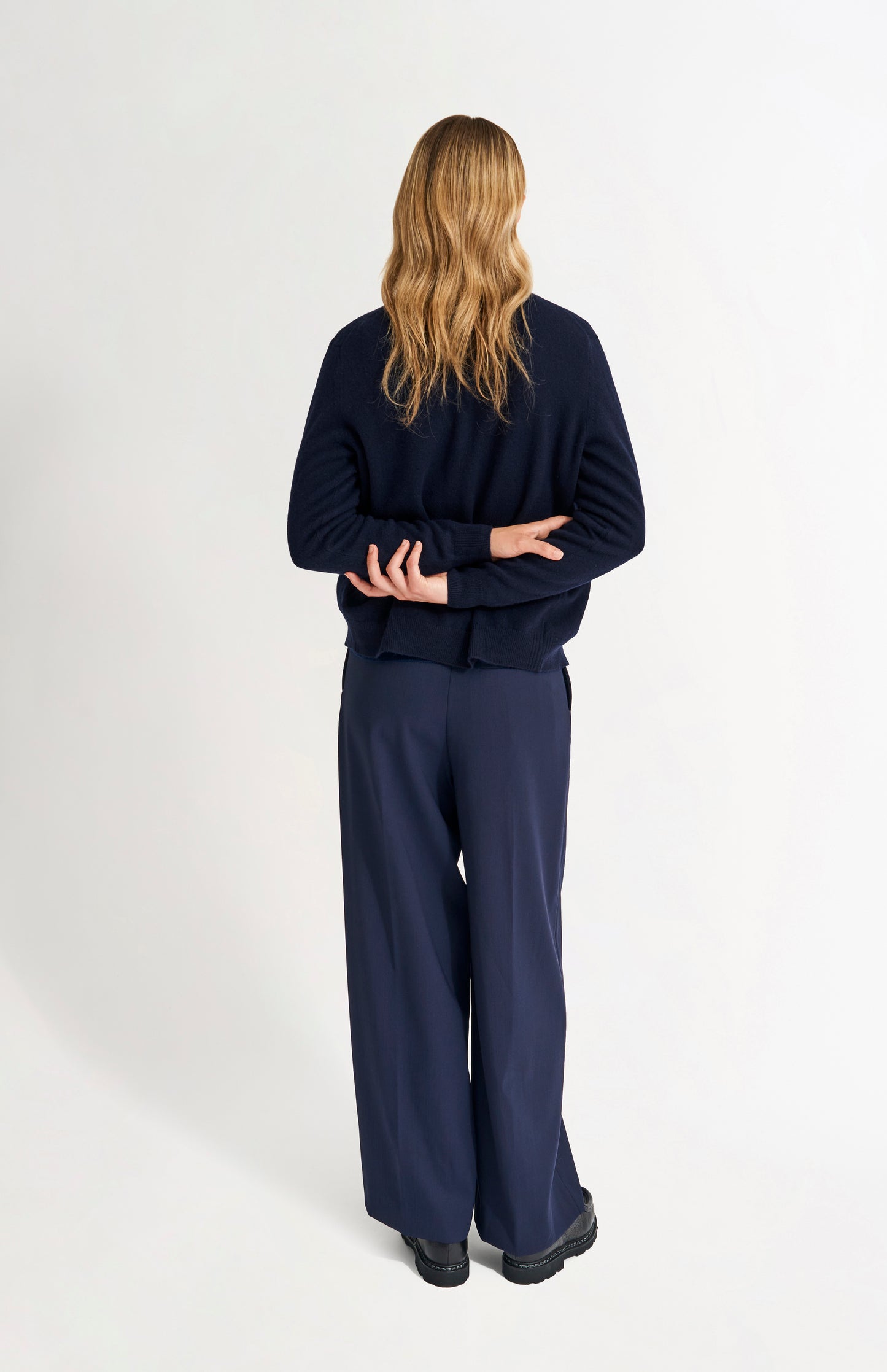 Womens Classic Round Neck Cashmere Cardigan In Navy Melange