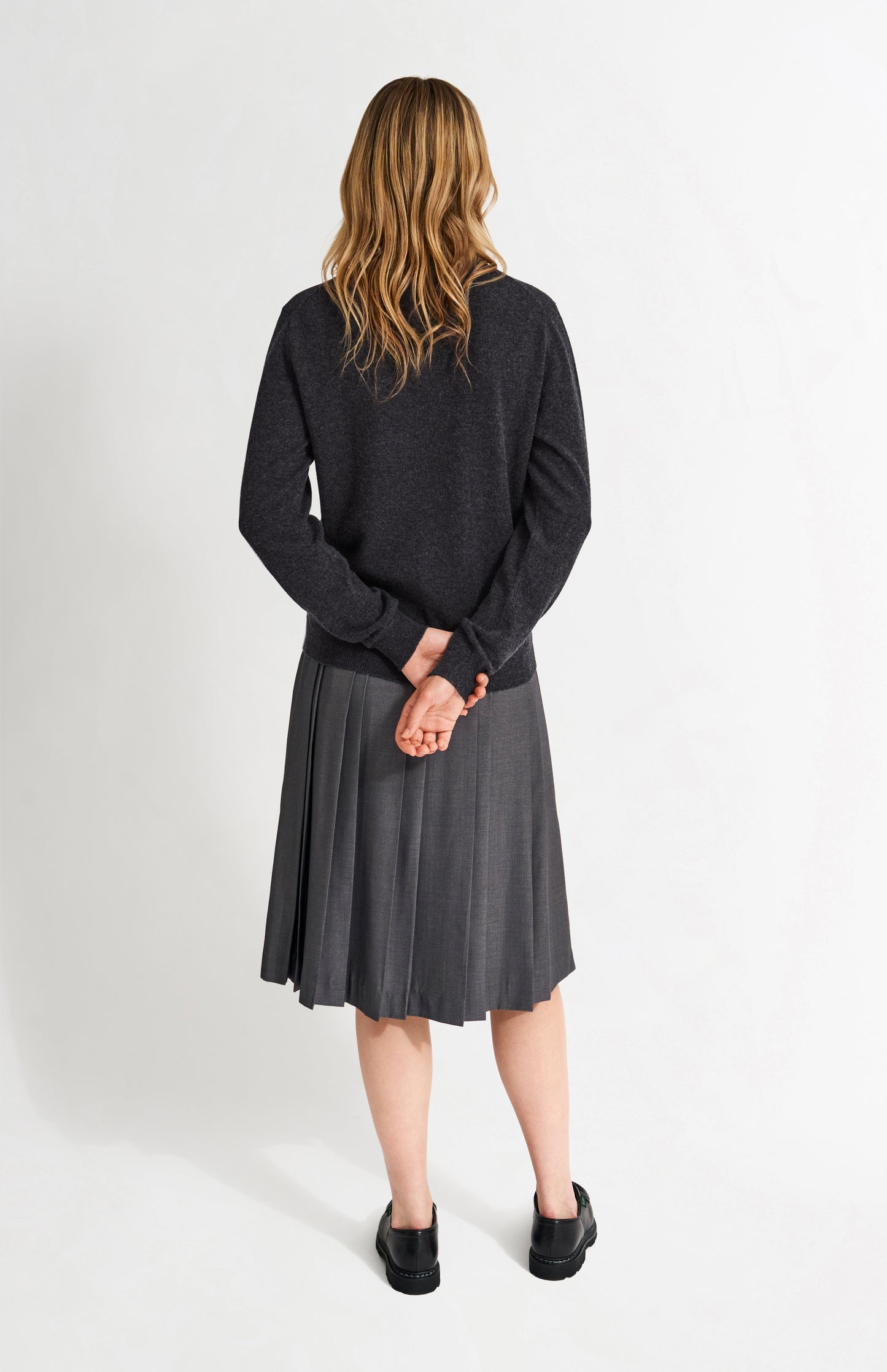 Womens Classic Round Neck Cashmere Jumper In Charcoal