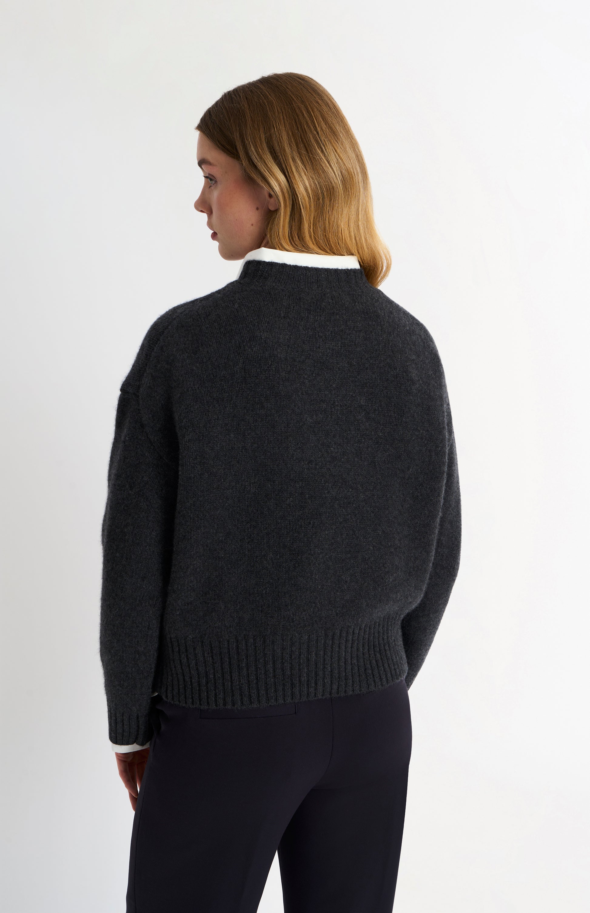 Women's Crew Neck Chunky Cashmere Jumper In Charcoal Mealnge
