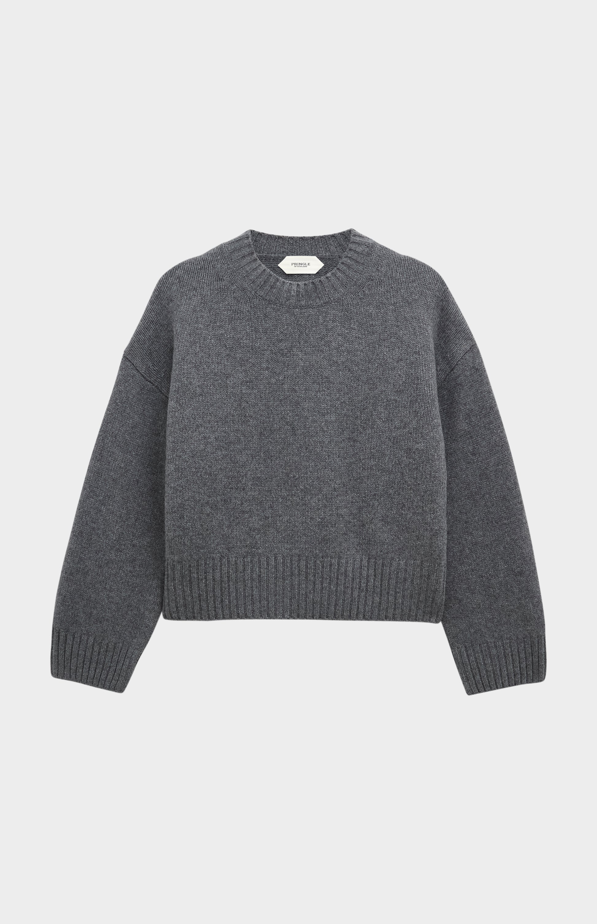 Women's Crew Neck Chunky Cashmere Jumper In Grey Melange