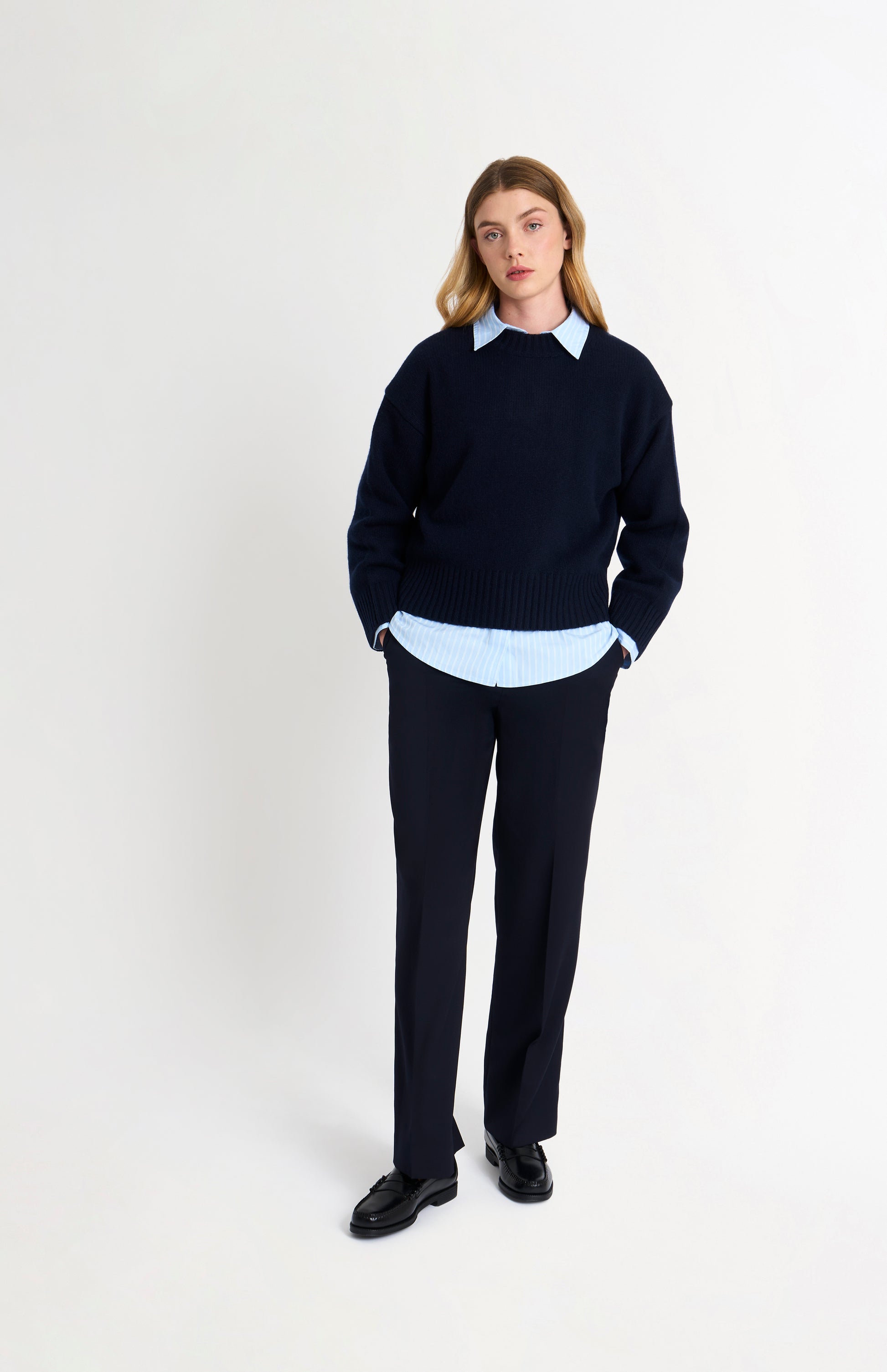 Women's Crew Neck Chunky Cashmere Jumper In Navy Blue